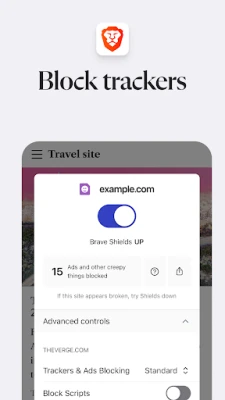 Brave Web Browseri südameks on selle võimas sisseehitatud reklaamiblokeerija, mis mitte ainult ei eemalda häirivaid bännereid ja hüpikaknaid, vaid takistab ka privaatsust rikkuda püüdvat jälgimist. Nii säästate oluliselt nii oma andmemahtu kui ka seadme akut, nautides samal ajal puhtamat ja organiseeritumat veebisisu. Brave tagab, et Teie veebikäitumine jääb isiklikuks, kaitstes Teid pahavara ja soovimatute jälgijate eest, kes püüavad Teie tegevusi pidevalt jälgida.