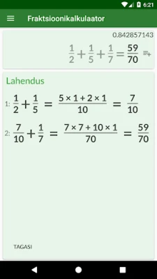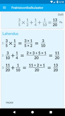 Unusta tüütu käsitsi lihtsustamine! Meie kalkulaator toob automaatse lihtsustamise otse sinu käeulatusse, viies iga murdarvu selle kõige algsemasse ja hõlpsamini käsitletavasse vormi. Pole vahet, kas kombineerid kümnendarve murdudega või vastupidi – **Lahenduseta fraktsioonikalkulaator** saab sellega hõlpsalt hakkama, esitades tulemused alati murdosana ja pakkudes samal ajal ka vastavat kümnendväärtust. See paindlikkus säästab aega ja aitab vältida vigu, pakkudes alati selget ja täpset ülevaadet.