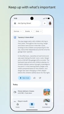 Hoidke oma kodu sündmustel silma peal enneolematu lihtsusega. Google Home pakub kaamera reaalajavaadet ja hõlpsasti sirvitavat ajalugu, mis tagab, et olete alati kursis oma ruumides toimuvaga, olgu te siis kodus või eemal. Viige oma kodu juhtimine järgmisele tasemele, kasutades Home'i Geminit. Lihtsalt rääkige oma soovist, ja teie nutiseadmed tegutsevad vastavalt, muutes igapäevased toimingud imelihtsaks – alates valgustuse reguleerimisest kuni termostaadi seadistamiseni.