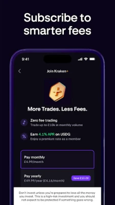 Lisaks lihtsatele tehingutele pakub **Kraken** ka sügavamaid turuülevaateid detailsete varalehtede, kohandatavate graafikute ja projektide kokkuvõtetega. Loo oma lemmikvarade jälgimisloend ja soeta neid otse sealt. Kontode loomine ja rahastamine on rakenduses sujuv, toetades mitmeid maksevõimalusi, sealhulgas Google Payd, ning võimaldades kiiret raha saatmist teistele **Krakeni** kasutajatele üle maailma ilma tasudeta, kasutades unikaalset @Kraktagi. Süvenemaks pakub **Kraken** lisaks ka tasulist tellimisteenust Kraken+, mis annab madalamaid tehingutasusid ja täiustatud tasusid teatud varadele. Palun pea meeles, et krüptovaluutadesse investeerimine hõlmab riske ja väärtused võivad kõikuda; enne investeerimist on oluline mõista kõiki tingimusi.