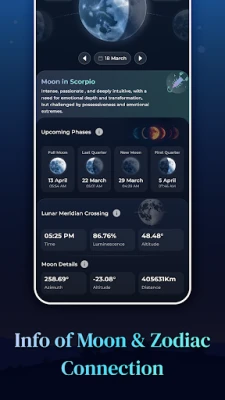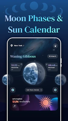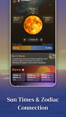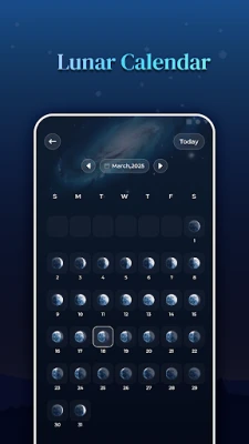 Moon Phases & Sun Calendar muudab taevase planeerimise imelihtsaks tänu oma intuitiivsele kalendrivaatele, kus saad ühe puudutusega uurida Kuu ja Päikese andmeid mis tahes kuupäeva kohta ja kiirelt näha olulisi kuusündmusi. Ära jää enam kunagi ilma tähtsast taevasündmusest tänu nutikatele märguannetele, mis teavitavad sind Noorkuu, Täiskuu, veerandite, päikesetõusu või kuutõusu algusest – kohandatavate ajastuste ja eelistustega. Isikupärasta oma kogemust valides eelistatud kellaaja- ja vahemaamõõdud ning täpse sodiaagitüübi, või muuda käsitsi asukohta, et avastada taevast mistahes maailma nurgast. Moon Phases & Sun Calendar — sinu igapäevane kompass universumis.