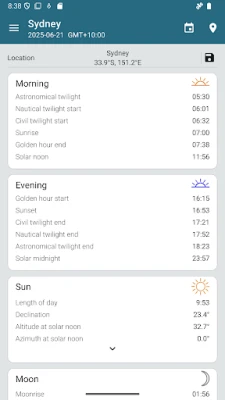 Kas olete fotograafiaentusiast, matkaja, meresõitja, aednik või droonipiloot? Sun Position on teie usaldusväärne kaaslane taevakehade liikumise mõistmisel ja oma tegevuste planeerimisel. See rakendus pakub detailseid andmeid päikese ja kuu kohta, esitades need lihtsal ja intuitiivsel viisil. Olenemata sellest, kas otsite ideaalset valgust pildistamiseks, parimat laagripaika või vajate täpset teavet navigeerimiseks, Sun Position aitab teil planeerida iga välitegevust ülima täpsusega.