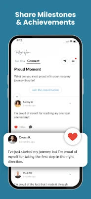 Rakenduse kaudu saad reaalajas suhelda endiste kursusekaaslastega, vahetades mõtteid ja kogemusi otsekohe. Iga päev ootavad sind uued inspiratsioonipuhangud, mis aitavad hoida fookust ja suunata oma mõtteid positiivselt. Süvenda oma teadmisi rikkaliku taastumisteemalise sisuga, avastades videoid, podcaste ja artikleid, mis toetavad sind edasiminekutel. Lisaks pakuvad diskussioonid sulle võimaluse jagada oma häält, väljendada tundeid ja innustada teisi samal teekonnal olevaid inimesi.