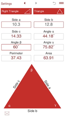 Kas matemaatika, geomeetria või inseneriülesanded panevad sind sageli kolmnurkade arvutuste ees pead murdma? Trigonometry Master on siin, et muuta keerulised trigonomeetrilised lahendused lihtsaks ja kiireks. See intuitiivne rakendus on loodud täpselt selleks, et avada kolmnurkade saladused, olgu tegemist täisnurkse või kaldkolmnurgaga. Sisesta vaid vajalikud parameetrid ja lase Trigonometry Masteril teha ülejäänu, leides puuduvad küljed, nurgad, pindala ja ümbermõõdu sekunditega.