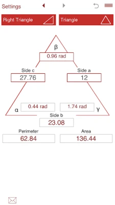 Olenemata sellest, kas tegemist on täisnurkse kolmnurgaga, kus piisab kahest sisendväärtusest – olgu need siis kaks külge või külg ja nurk – või keerukama kaldkolmnurgaga, mis nõuab kolme teadaolevat parameetrit (kolm külge, kaks külge ja nurk või kaks nurka ja külg), kohandub Trigonometry Master sinu vajadustega. Vali lihtsalt sisestusrežiim, sisesta andmed ja vaata, kuidas rakendus genereerib täpsed tulemused. Toetatud on nii kraadid kui ka radiaanid, tagades paindlikkuse kõigi matemaatiliste nõudmiste jaoks.